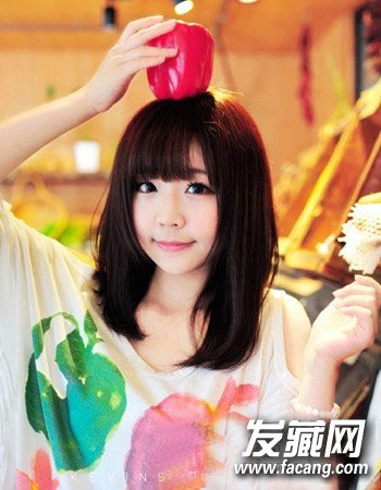 一款直发发型可是没有经过任何的烫染设计的最自然的发型了,清新的发色与中长式的直发相搭,而微显凌乱感的齐刘海造型与这种略显蓬松式的中长发相搭最显小女生的可爱甜美感了。