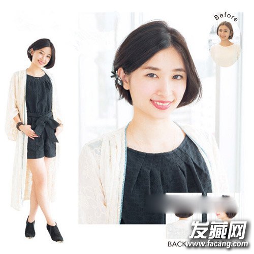 After:发色被染成了稍微偏红的黑色发色,头发轮廓像是含苞待放的花骨朵,不露出明晃晃的中分线,整个人的气质和时尚度被提升!在耳边增加小小发饰,又能立即增加甜美感。是一款让自己看起来干净、利索又显气质的不错参考。