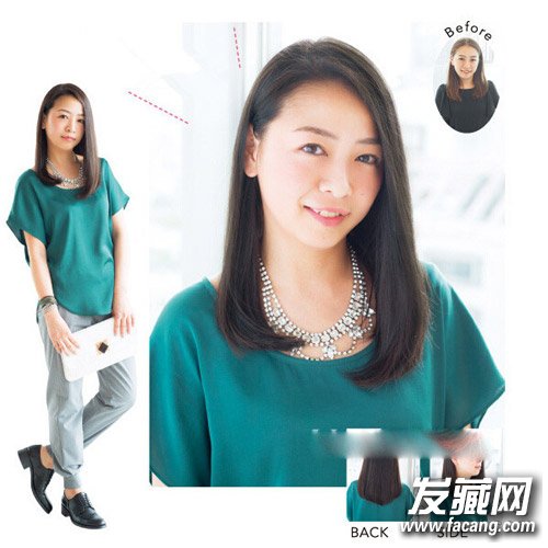After:深发色比浅发色更显气质;改变头发侧分线路,只将一侧头发挽向耳后,温婉而优雅。