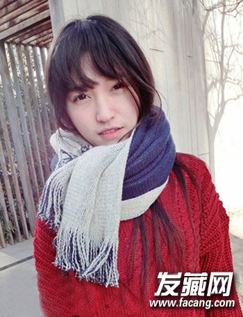 比较慵懒的一款冬季发型,对于死宅的你绝对适合,不要打理头发,披肩的发型绑上围巾,温暖又利落,空气刘海又不失甜美气息。
