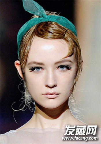 一头简单的盘发可以说是上街的常见款,要让这样一款朴素到不能再朴素的发型吸“睛”,雪纺质地的轻盈丝带就是必备的单品。可以选用湖绿色加强视觉冲击力,在丝带的上方简单的打结,露出一边小“兔耳朵”,非常可爱,而且创意十足