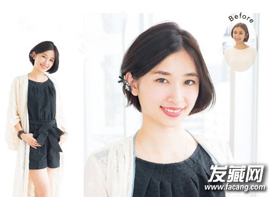 After:发色被染成了稍微偏红的黑色发色,头发轮廓像是含苞待放的花骨朵,不露出明晃晃的中分线,整个人的气质和时尚度被提升!在耳边增加小小发饰,又能立即增加甜美感。是一款让自己看起来干净、利索又显气质的不错参考。
