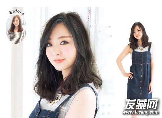 Before:模特的脸型属于上窄下款,头发无精打采的披散在肩前,暴露了脸型的缺陷。
