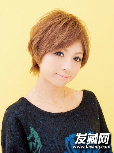 发型点评:棕黄色短发彰显出少女般的青春活力感,斜刘海沿着眼角飘逸摆动,让你瞬间年轻五岁,达到减龄效果。