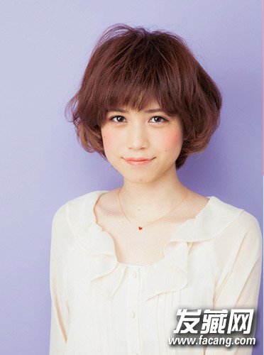 发型点评:栗色短发发色保暖绚丽,蓬松的短发烫发立体感十足,搭配明丽双眼与粉色双颊,可爱指数加倍。