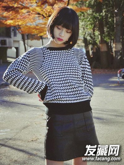 清纯系MM必备的一款短发发型,齐刘海波波头甜美养眼,略带复古感的设计清新文艺,多种季节都适合。