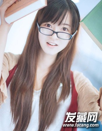 这一款气质的层次中长发不仅简单而且有气质感,个性的碎发刘海加上可爱呆萌的大眼镜显露出无比的时尚感来,对于学生妹来说再适合不过的了。