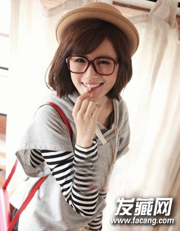 可爱的齐肩短发不仅简单而且时尚有个性,将小女生活泼可爱的一面展现出来,搭配上帽子后勾勒出无比的时尚感来,造型简单而且大方,搭配上眼镜十分有气质。