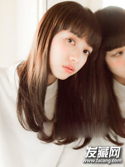 齐刘海中长发几乎是每个女孩都曾有过的发型。在自己头发“青黄不接”的时候,不妨自己将其梳理顺直,将发梢用卷发梳打造成卷,看上去非常显脸小又年轻。