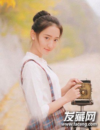 小个子女孩子,瘦小的身材,脸蛋都是小巧的,绑个甜美有可爱的花苞头特别适合,格纹背带裤,白衬衫,一股浓郁的文艺小清新风袭来。