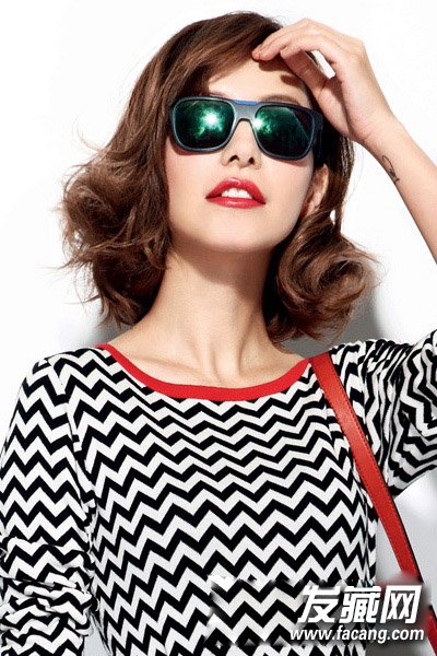 今年流行的及肩发将发尾处烫出蓬松的波纹,搭配上极具个性感的墨镜,凌乱中带出野性。