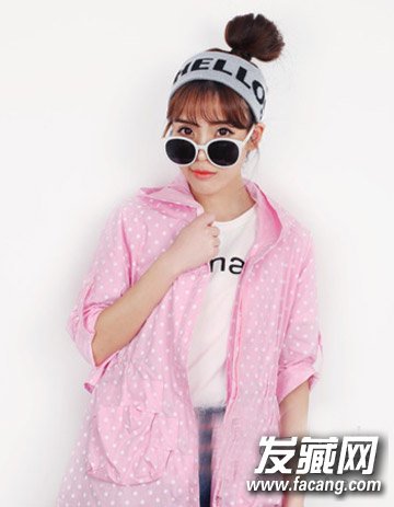 十分可爱的一款春季发型,俏皮的高丸子头发型加上甜美的空气刘海, 一款简单而且休闲的外套打理起来十分有魅力。