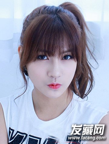 个性的侧扎高马尾发型就是矮个子MM的专属造型哦, 甜美的薄刘海加上两侧的发型设计显得十分可爱灵动,而且时尚的卷发马尾也很显气质哦。