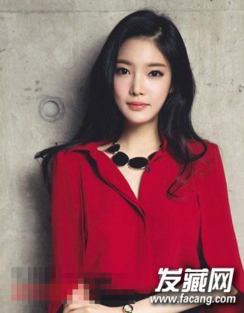 优雅而且有魅力的一款气质的不对称发型的设计,大红色的衬衫搭配上披肩长卷发显得十分有气质,即使是椭圆脸也十分抢眼哦。