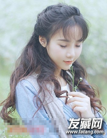 有些肉肉脸不过很好的脸型选择当然也是不错的,甜美的空气刘海加上公 主头发型的打理显露出无比的时尚感来, 气质的长卷发勾勒出别致的时尚感。