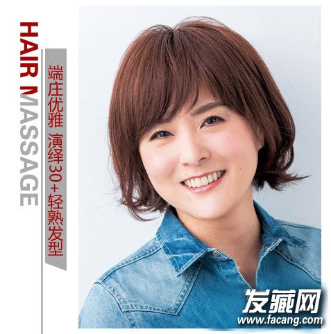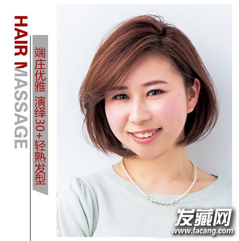 发型点评:侧分长刘海沿着眼角飘逸起来,波波头烫出轻盈的圆弧状,蓬松的烫发效果让头型看起来更加饱满圆润。