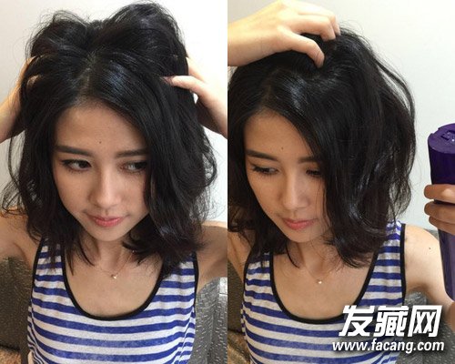 接着使用双手的手指伸入发根处,用Z字型的方式将发根搓松。