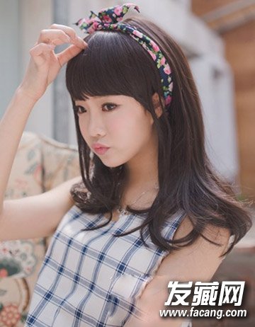甜美的韩式发型设计,柔顺的平刘海加上气质的齐肩发型的设计,造型是很简约,不过搭配上小碎花的蝴蝶结发带后更加显露出时尚感来。