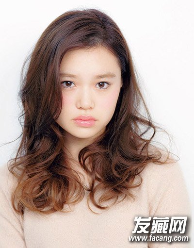 发型点评:侧分长发烫出轻盈的线条感,圆润的轮廓弧度无意间遮盖住肉肉的脸颊,空气感卷发展现出浪漫的色彩,略显凌乱的卷发摆动在肩头,浪漫而诱人。