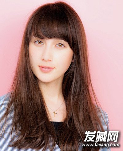 发型点评:厚重的刘海遮盖住整个额头让你瞬间长脸变身瓜子脸。顺直的秀发浪漫甜美,打理起来也是十分方便。