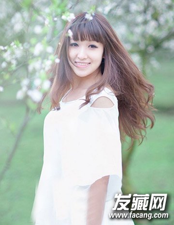 女生小清新发型,清纯甜美,精致有型的烫卷发尾搭配修颜齐刘海,非常时尚又很受欢迎的造型设计。