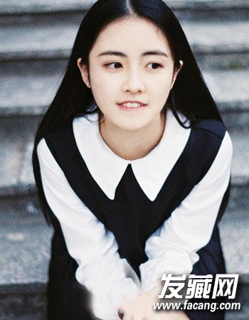 气质的中分中长直发 发型也是学生们比较喜欢的哦,清爽的无刘海发型与黑白相间的连衣裙搭配十分有气质。