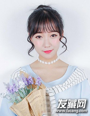 简单的空气感刘海造型设计灵动吸睛,再配合乌黑亮丽的自然发色更添十足的清纯气质风,卷发形式的长刘海与丸子头的盘发更添夏季清爽粉嫩感。