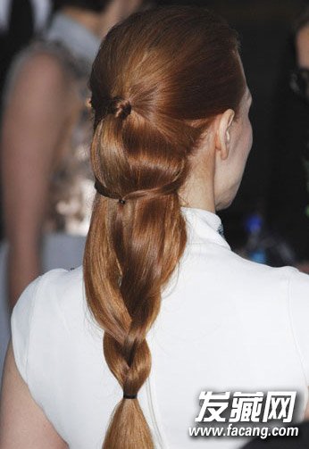 脑后扎成公主发,再从耳后掏出两绺系在一起,将剩下的头发松松地编成麻花,重点是要非常松散。