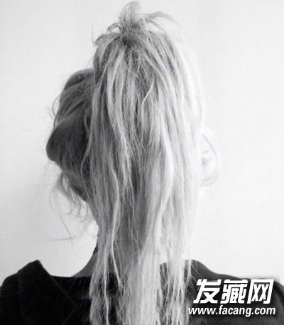 这一款马尾扎发巧妙回避了传统马尾扎发的过于紧致服帖的缺点,在剪裁层次丰富略微凌乱的长发基础上,以手抓发打造的自然蓬松马尾扎法,飘逸灵动时尚清新,极具挑战的银白色的染发颜色时尚感十足!