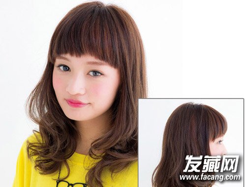 发型点评:卷发沿着脸颊轻柔的摆动,螺旋烫卷发散发出浪漫迷人的气质,圆弧形刘海露出眉毛的设计清爽简约。