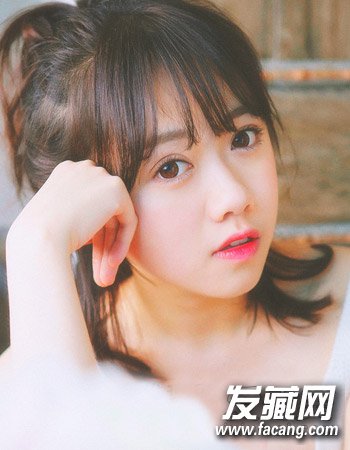 这一款清新的日系少女发型,超薄的刘海设计与可爱的半扎发发型结合起来,发尾的小卷设计显得更加甜美有个性,粉嫩讨喜。