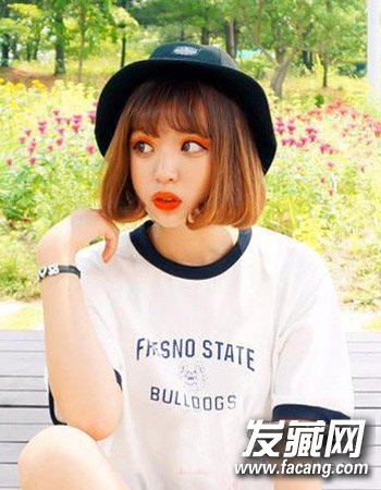 将清新灵动的空气感刘海进行简单的内扣烫发设计可是更添十足的活泼可爱感的了,再配合这种棕红色的染发设计与简单的中短发内扣波波头同样很显青春甜美活力风。