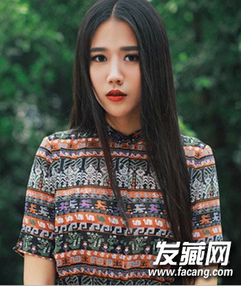 首先是一款气质的中分长直发发型,柔顺的长直发与精致的鹅蛋脸的搭配显露出无比的时尚感来, 搭配上小清新的民族风的长裙温婉动人。