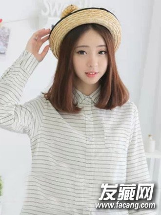 小清新型的女生适合什么发型呢?棕色系的内扣中分发型,搭配好看的帽子,清秀白皙的脸蛋,突显十足清新可爱范。