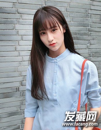 简单的空气感刘海造型设计同样可以增添女生的温柔气质风哦,再利用自然的发色与清新飘逸的长直发更添十足的温柔淑女风。