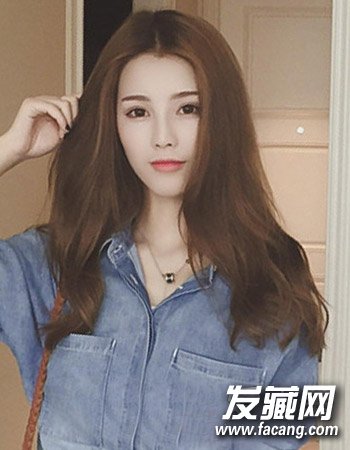 同样是低调的褐色染发颜色,再配合这种简单飘逸的韩式长发造型一方面有简单的修颜效果,同时还这显女生十足的优雅妩媚风。
