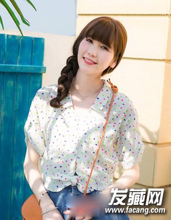 以厚重的齐刘海造型设计为主,再搭配这种简单的低调的深棕色染发颜色来增添女生的甜美可爱风,侧边简单的马尾辫编发更添十足温柔淑女范儿。