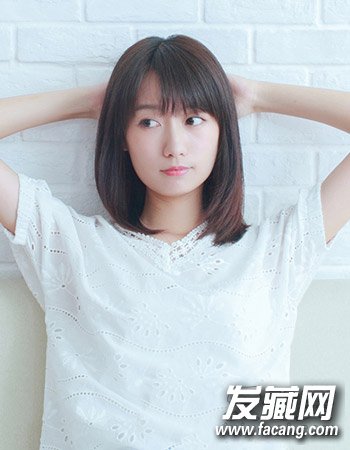 简单的斜刘海造型设计可是最显女生十足的温柔淑女风了,再配合这种清新低调的深棕色染发颜色与齐肩形式的中发内扣造型同样很显清新学院风。