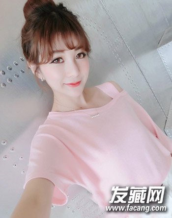 一款甜美的韩式花苞头发型,相信很多女生都会喜欢的,空气感的刘海凸显出精致 小巧的五官,清新又显气质。