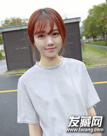 一款颇有淑女范的低马尾扎发,简单随性,空气感的刘海显得mm颇有小清新范,棕 色的染发也显得很有时尚感。