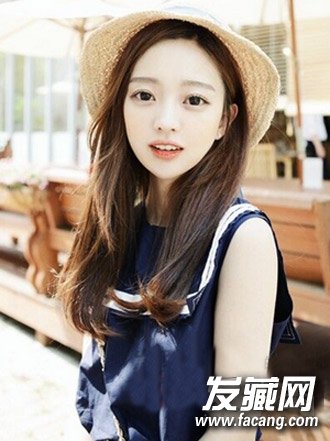 清新甜美的中长直发发型,发尾的外翻打造出个性与时尚的一面来,而且无刘海造型的设计搭配上帽子勾勒出别致的时尚感来。