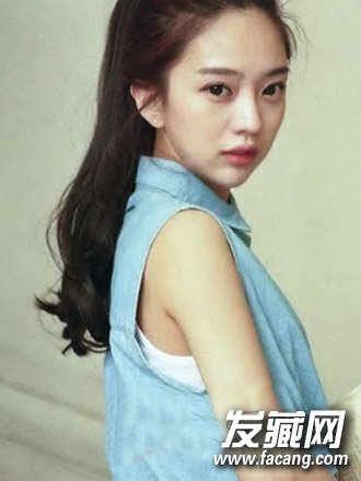 清爽的露额发型的设计与气质的高马尾发型的设计勾勒出别致的时尚感来,而且发尾的小卷自然清新,个性的高马尾时尚大气。