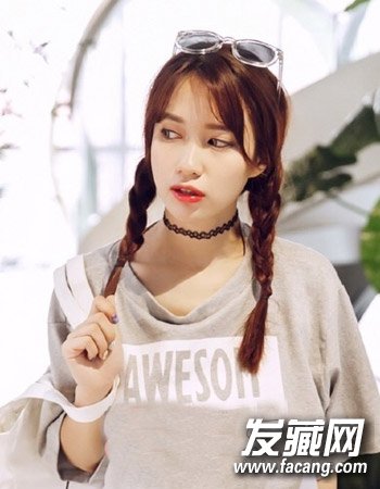 时尚感与潮流的搭配,斜刘海与双麻花辫的搭配,架着的双麻花辫的完美的拗出时尚感来,整个造型优雅甜美。