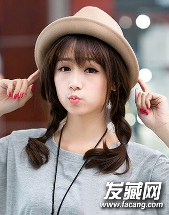具有减龄效果的双马尾辫扎发,甜美可爱,轻盈的刘海凸显出精致小巧的五官,非常的具有萝莉范。