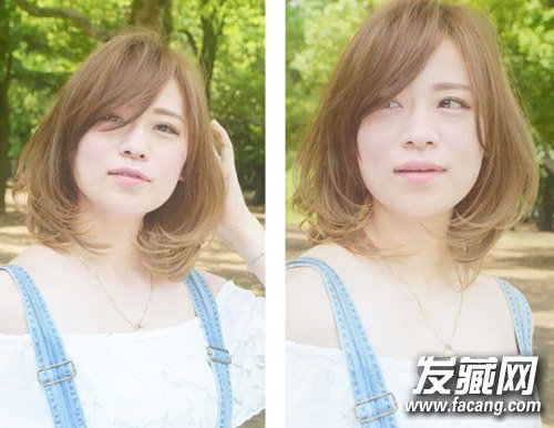 二八斜刘海修饰MM圆脸,内扣发尾轻松瘦脸。黄棕色的染发时尚,凸显MM白皙好肤质。