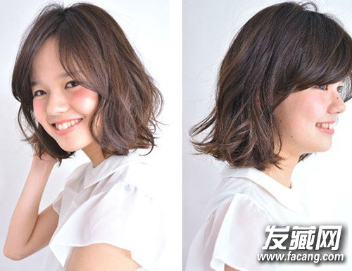 四六分刘海空气感强,轻盈瘦脸,耳下微卷内扣发丝蓬松俏皮,能够很好的遮挡脸上的肉肉。整体发型朝气十足,学生味儿比较浓。