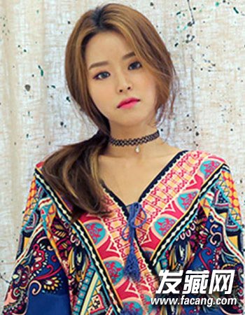 很适合轻熟女的一款发量少女生的发型设计,复时尚的中分造型设计,再搭配深浅不一的时尚棕色染发颜色与侧边简单的低马尾扎发更添十足优雅气质风。