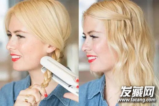 编辫子前先扎一个简单的马尾,编好后再松开皮筋。先编个麻花辫,然后再用平板夹加热麻花辫,最后拆掉辫子后,就有着自然的微微卷度。
