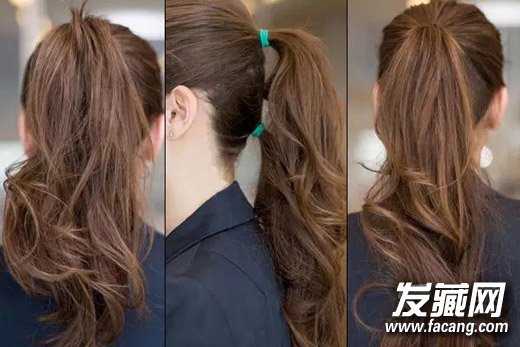 梳成上下两个并列的马尾会比一个粗粗的马尾看起来更有层次感,而且也显得修长许多。