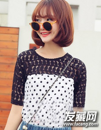 一款精致的中短发发型,甜美的内扣刘海与中短发搭配起来,不仅甜美而且还很显气质,发尾的内扣与中短发搭配起来十分抢眼。